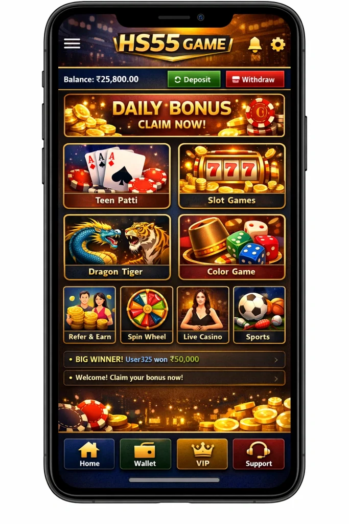 HS55 Game APK is a mobile-based gaming application that offers a variety of online games in a single platform. It is typically available as an APK file, allowing users to download and install it manually on Android devices. The app is designed with a user-friendly interface, enabling easy navigation between different sections such as games, wallet, account settings, and rewards.